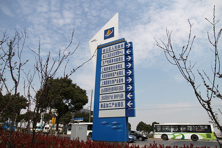 • 產品描述:金山工業區的標識系統采用海藍色主基調,凸顯其面臨大海的地理特質。近十米高的船形立牌,又似一張揚起的風帆。